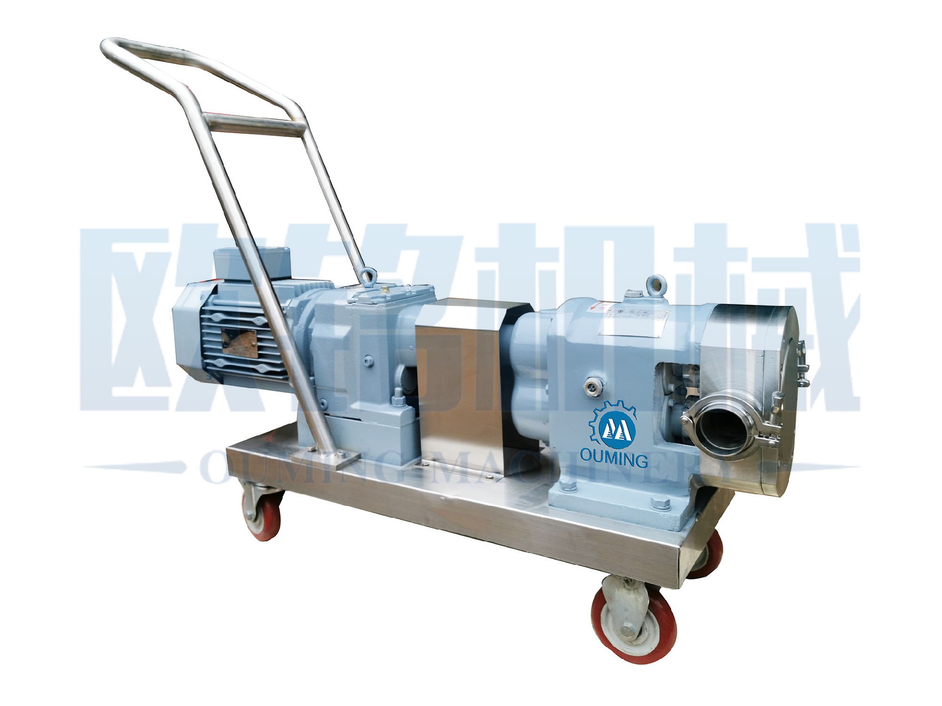 該產品借助于工作腔里的多個固定容積輸送單位的周期性轉化來達到輸送流體的目的。原動機的機械能通過泵直接轉化為輸送流體的壓力能,泵的流量只取決于工作腔容積變化值以及其在單位時間內的變化頻率,而(理論上)與排出壓力無關;轉子泵依靠兩個同步反向轉動的轉子(轉子葉數為2-8)在旋轉過程中于進料口處產生吸力(真空度),兩轉子將轉子室分隔成幾個小空間,在傳動軸的帶動下進行反方向旋轉,介質即被輸送至出料口,從而產生了較高的排放壓力,如此往復循環,特別適合中高粘度介質的輸送。